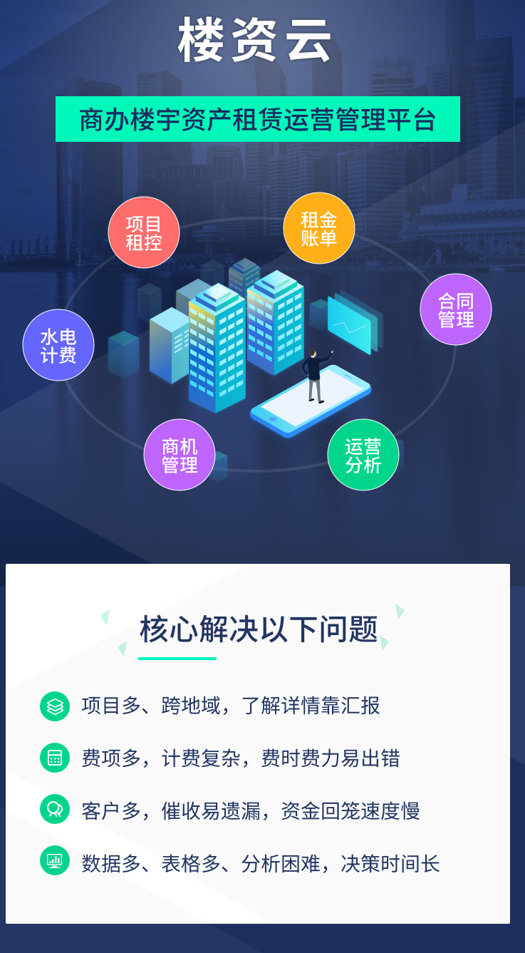 亦或是选购一套楼资云,从商业地产租赁业务全流程出发,提升项目ROI,提高计租率、稳定现金流。