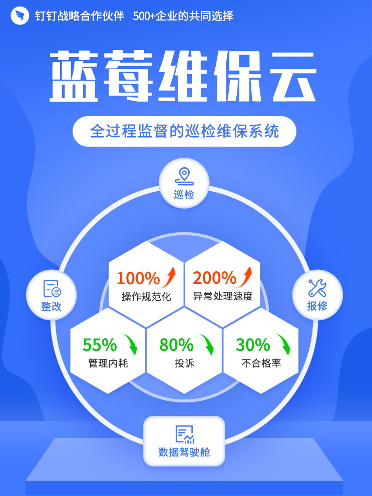 不妨考虑购买一套蓝莓维保云\B1易巡查,从源头出发,管控设备维护成本、提升生产产品品质,提升现场服务能力。